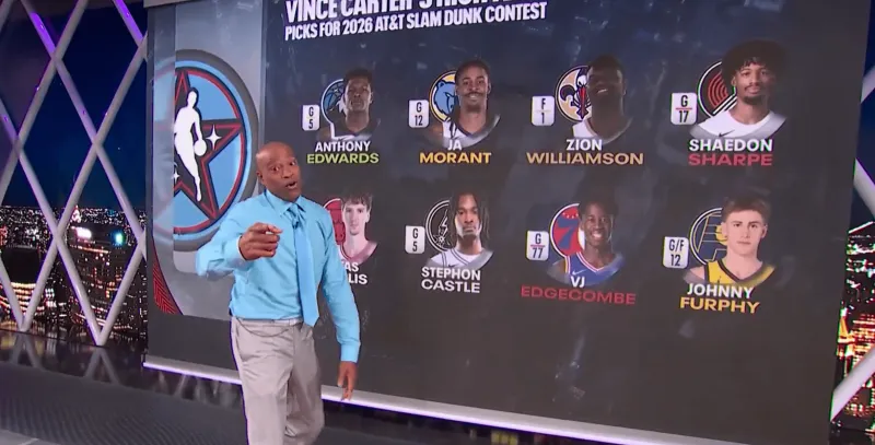 虎撲11月12日訊 今日,NBC評論員文斯-卡特在節目中分享了自己希望在扣籃大賽上看到的賽上8位球員: