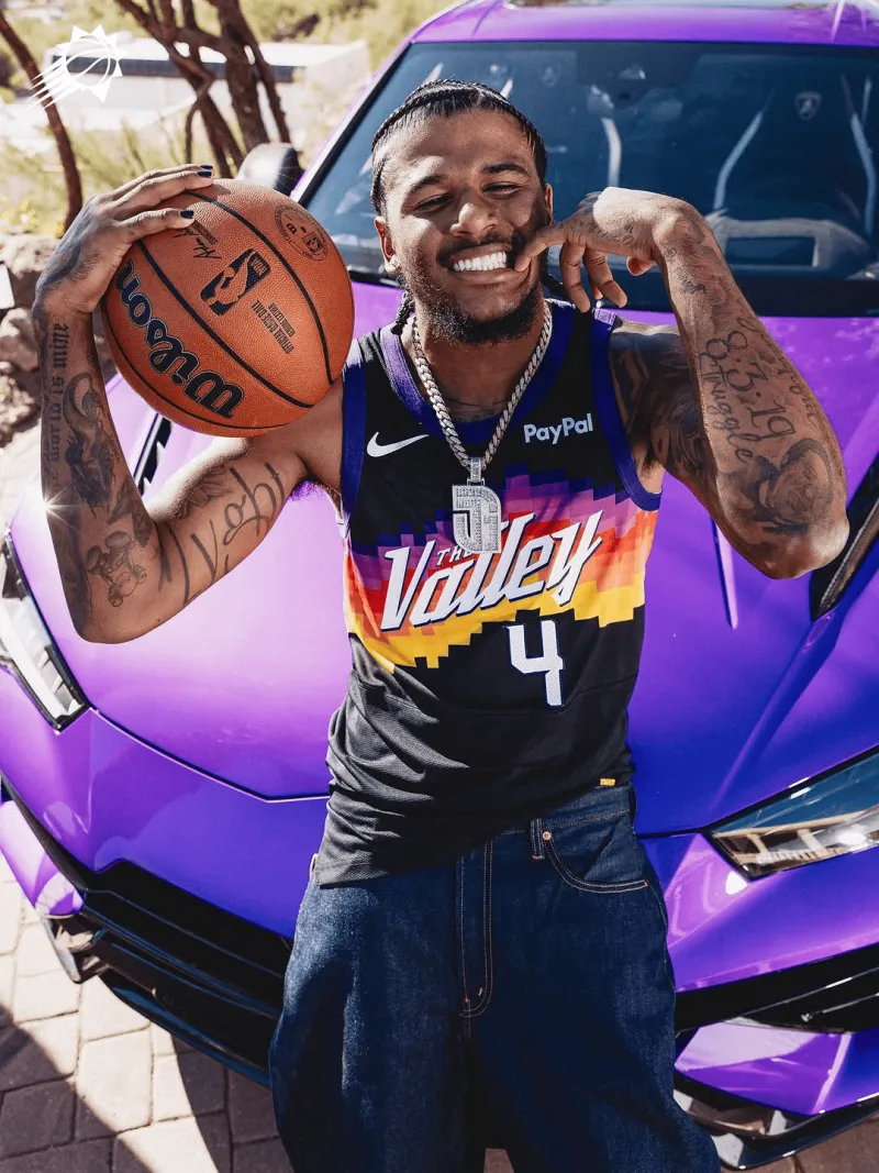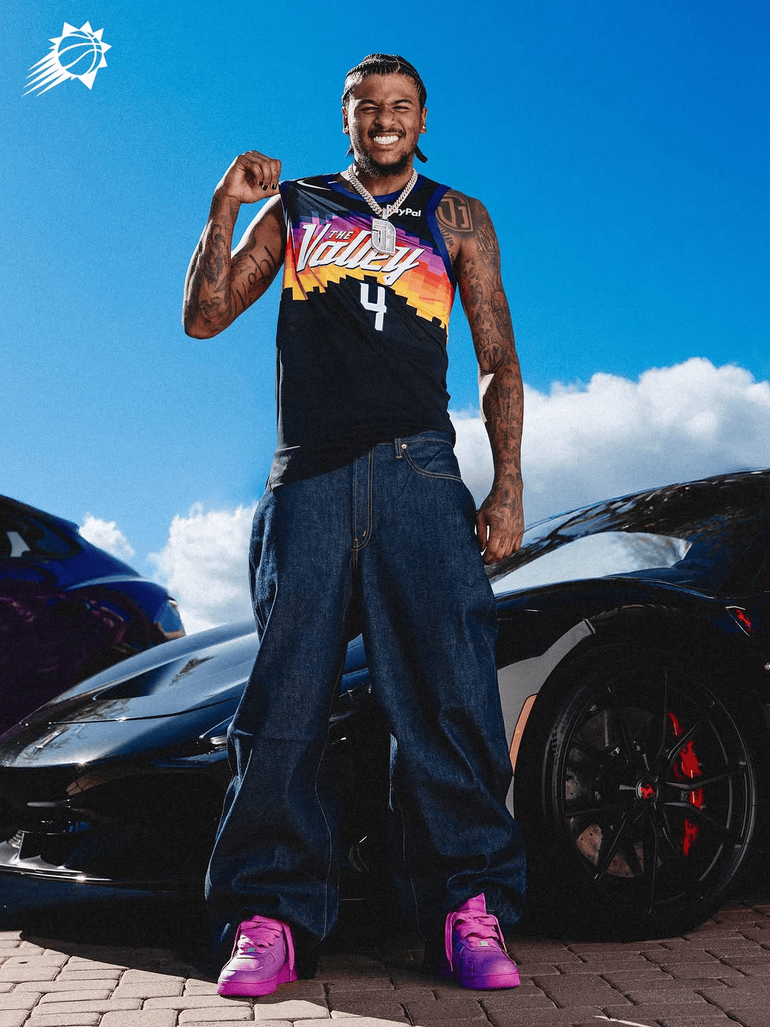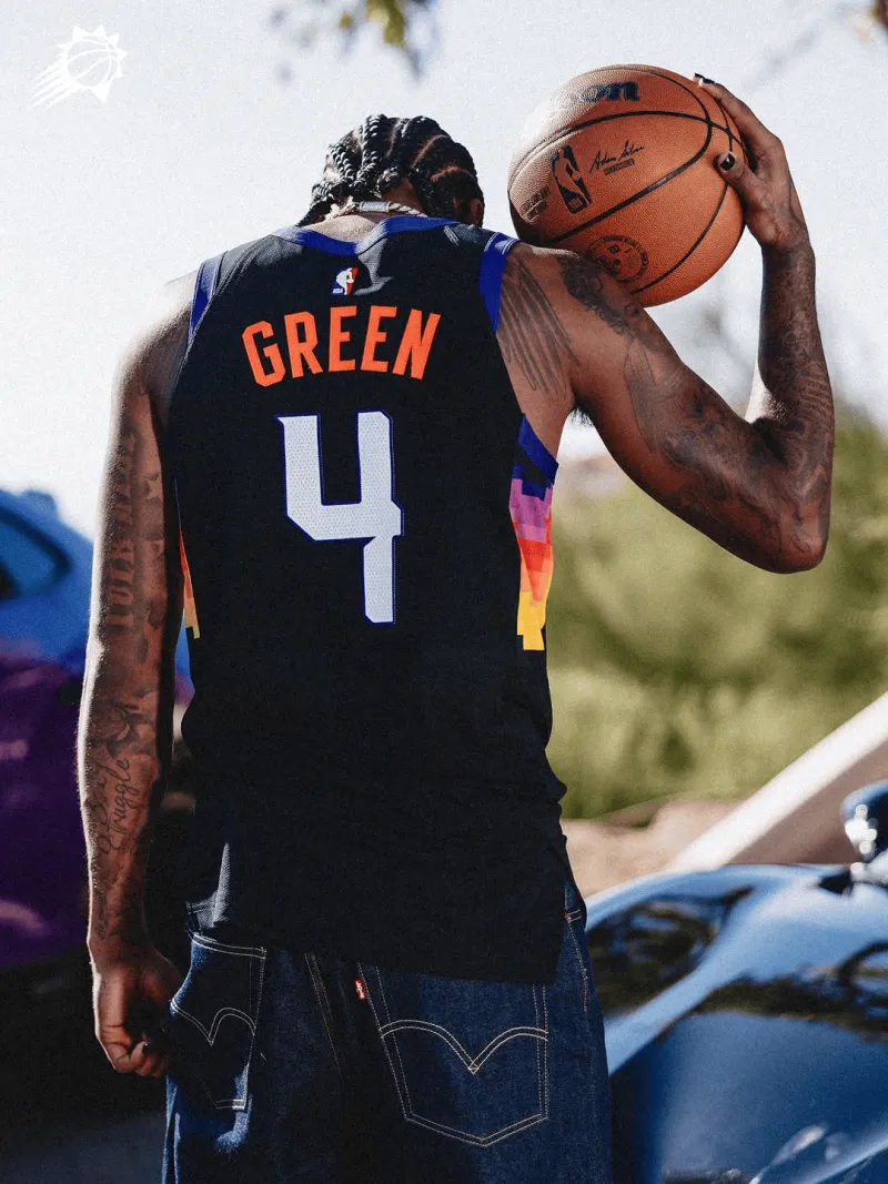 虎撲11月12日訊 太陽(yáng)隊更新官方社媒,曬出杰倫-格林身著(zhù)城市版球衣的曬杰帥照與球迷分享。