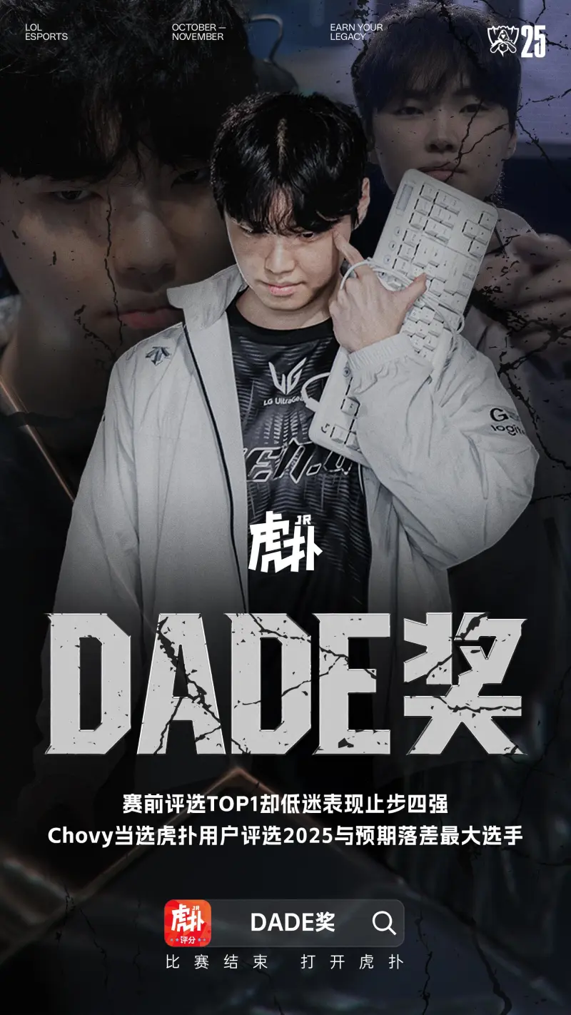 [DADE獎]經(jīng)過(guò)JRs的評選,Chovy當選2025全球總決賽虎撲Dade獎