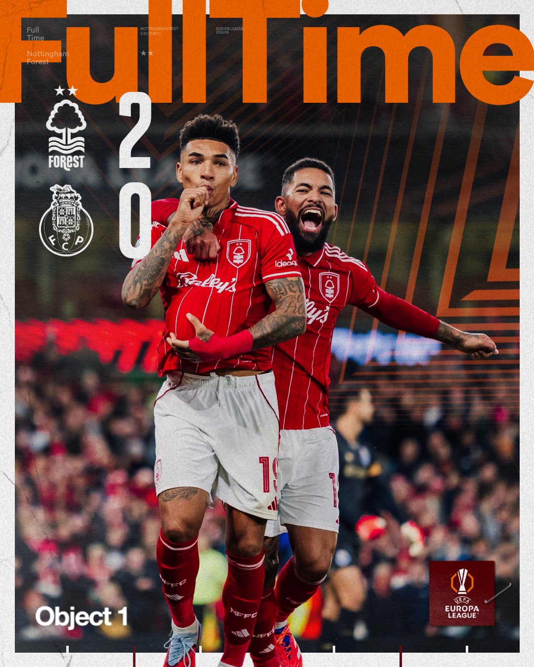 虎撲10月23日訊 歐聯(lián)聯(lián)賽階段第三輪,諾丁漢森林2-0波爾圖。板戰這是勝波森林收獲賽事諾丁漢森林自25年4月1日(英超第30輪主場(chǎng)1-0曼聯(lián))以來(lái)各項賽事的首場(chǎng)零封。