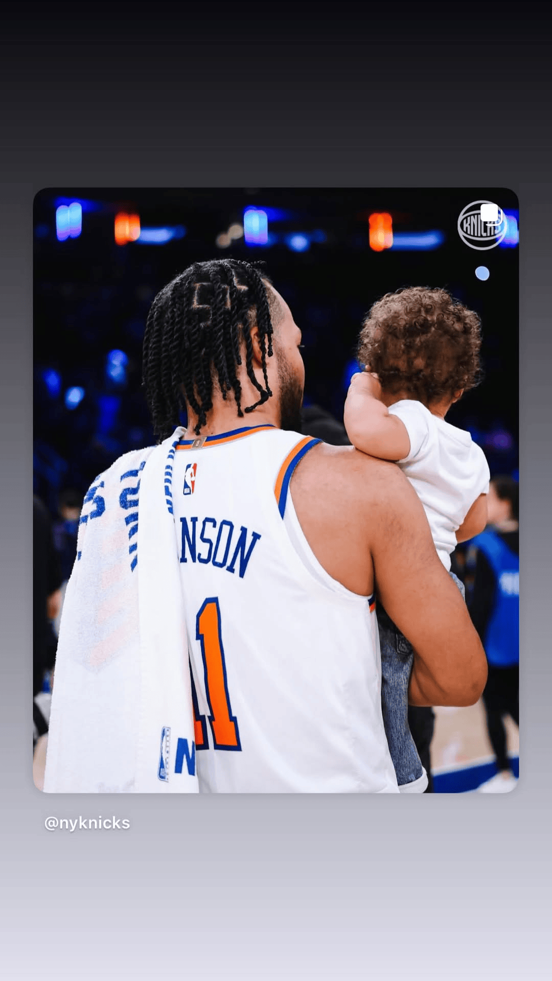 今日,布倫森更新自己的社交媒體,轉發(fā)了尼克斯官方曬出的自己抱著(zhù)兒子退場(chǎng)的照片。