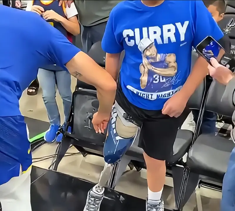 原來(lái)小男孩是庫里的忠實(shí)粉絲,在失去右腿后,他把庫里標志性的慶祝手勢“night night”印在了自己的假肢上,鼓勵自己堅持下去。