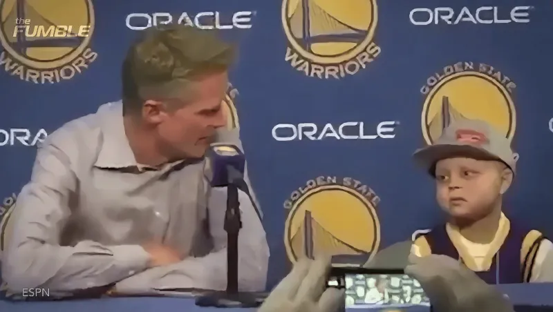 2016年,主教練科爾在更衣室急匆匆尋找庫里:“斯蒂芬,現在有一位小隊員非常需要你?!?/p>