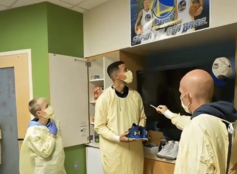 一周后,勇士客場(chǎng)挑戰步行者,比賽前一天,庫里瞞著(zhù)所有人來(lái)到醫院,想要給布羅迪一個(gè)驚喜。