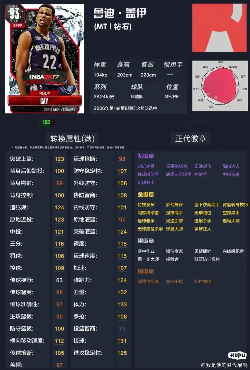 屬性就原封不動(dòng),徽章多給幾個(gè)金色的,防守徽章也不閹割就給你銅的。怎么可能五六百萬(wàn),怎么可能碰瓷陳列室,都沒(méi)玩過(guò)這個(gè)內核的蓋伊吧,都在云,他是特雷楊風(fēng)格呀,203的蓋伊還沒(méi)陳列室備孕,配個(gè)這風(fēng)格玩不起來(lái)的,當然垂楊的反手很好,這沒(méi)啥用呀,大個(gè)子沒(méi)有喬丹風(fēng)格了就是白費。對比皮爾斯,終結比皮隊強好幾個(gè)檔次,防守屬性也強,關(guān)鍵的是防守徽章半斤八兩。皮爾斯才200萬(wàn)不到,蓋伊六七百萬(wàn),五六百萬(wàn)的都來(lái)了。如果魔改喬丹風(fēng)格,那就比瓜強多了,不改風(fēng)格白費,貴不了多少。