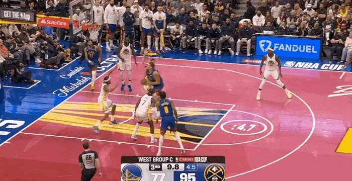 NBA杯小組賽,掘金對陣勇士的約基勇士比賽正在進(jìn)行中。