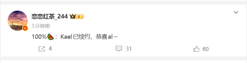 [JR熱議]博主爆料:100%Kael已續約