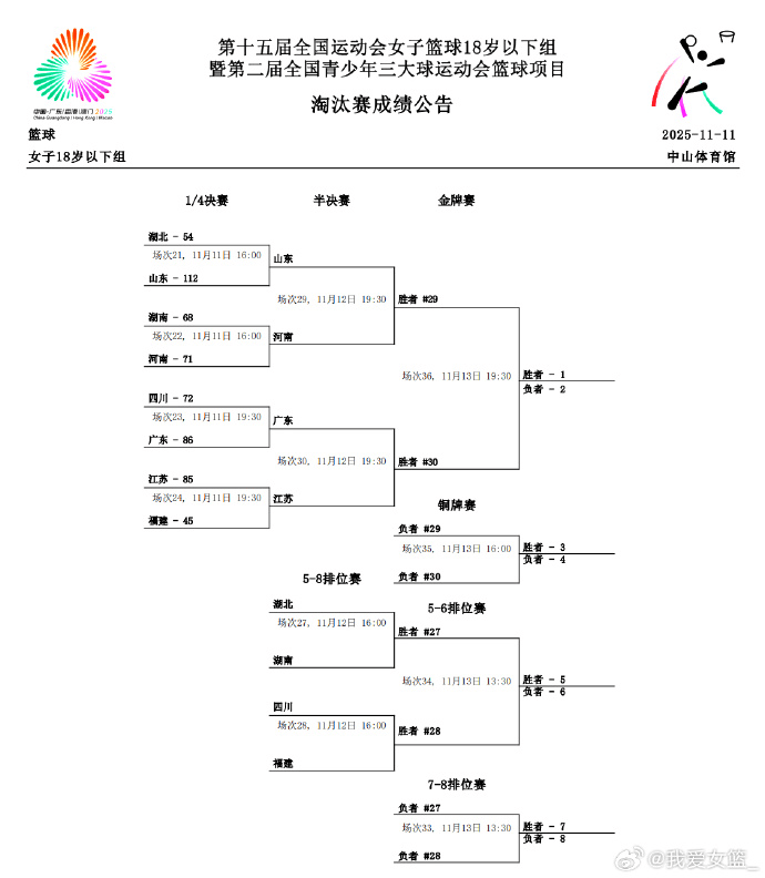虎撲11月11日訊 媒體人我愛(ài)女籃社媒總結全運會(huì )U18女籃第六日:河南隊準絕殺以下克上闖入四強。