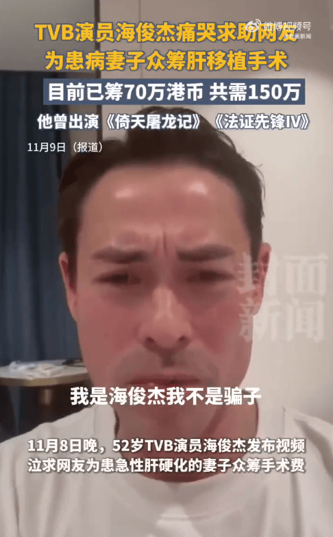 虎撲11月09日訊 11月8日晚,52歲TVB演員??〗馨l(fā)布視頻,泣求網(wǎng)友為患急性肝硬化的妻子眾籌手術(shù)費。他透露妻子病情危急,需盡快接受肝臟移植,醫生告知“這兩天內”是手術(shù)關(guān)鍵期,總手術(shù)費需150萬(wàn)港幣,目前已籌得70萬(wàn)。視頻中,??〗芮榫w激動(dòng)、多次痛哭,直言“我不是騙子”,懇請大家“能幫多少就幫多少”。據悉,??〗苁窍愀壑輪T、歌手,曾出演《倚天屠龍記》《義無(wú)反顧》《功夫足球》等作品。
