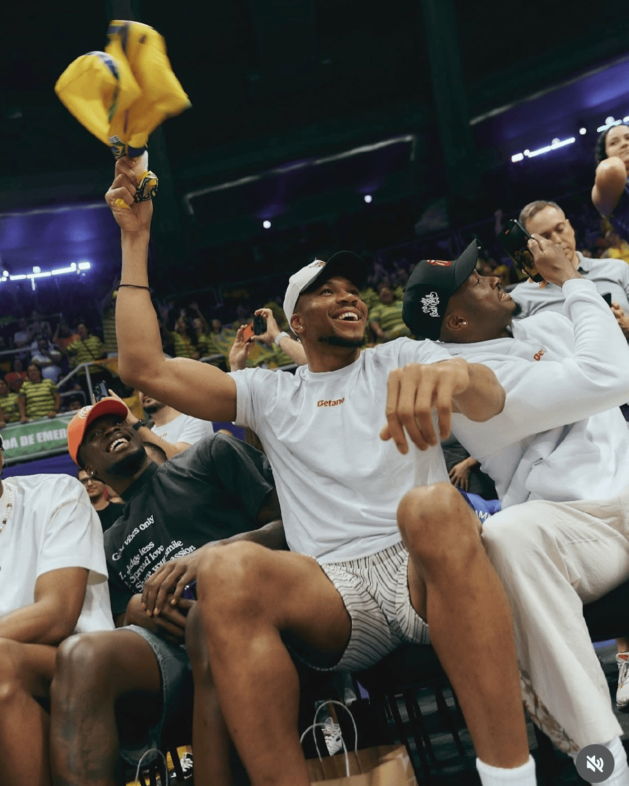 虎撲06月09日訊 雄鹿更新官方社媒,曬出了阿德托昆博觀(guān)看排球比賽照片。然自