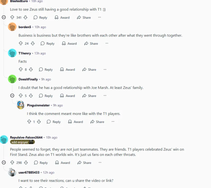 很高興看到Zeus仍然和T1保持著(zhù)良好的關(guān)系