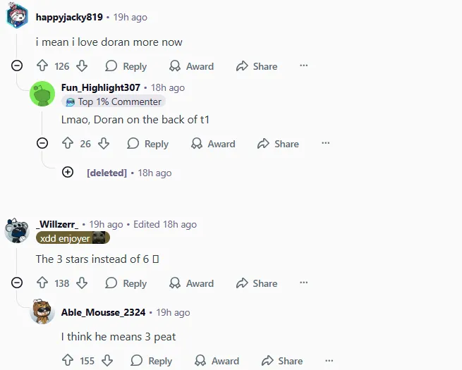 我認為這個(gè)評論更多的是指和T1選手們的關(guān)系。