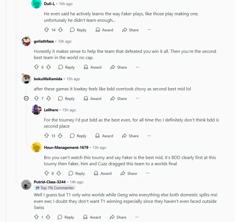 在這些比賽之后,我感覺(jué)Bdd隱隱地超越了Chovy成為第二好的中單。