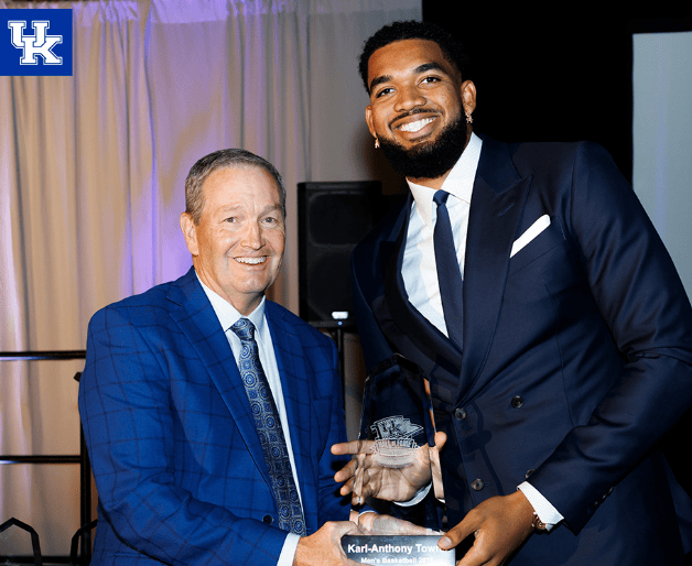 虎撲09月14日訊 肯塔基大學(xué)更新官方社媒,曬出了唐斯入選其大學(xué)體育名人堂照片。